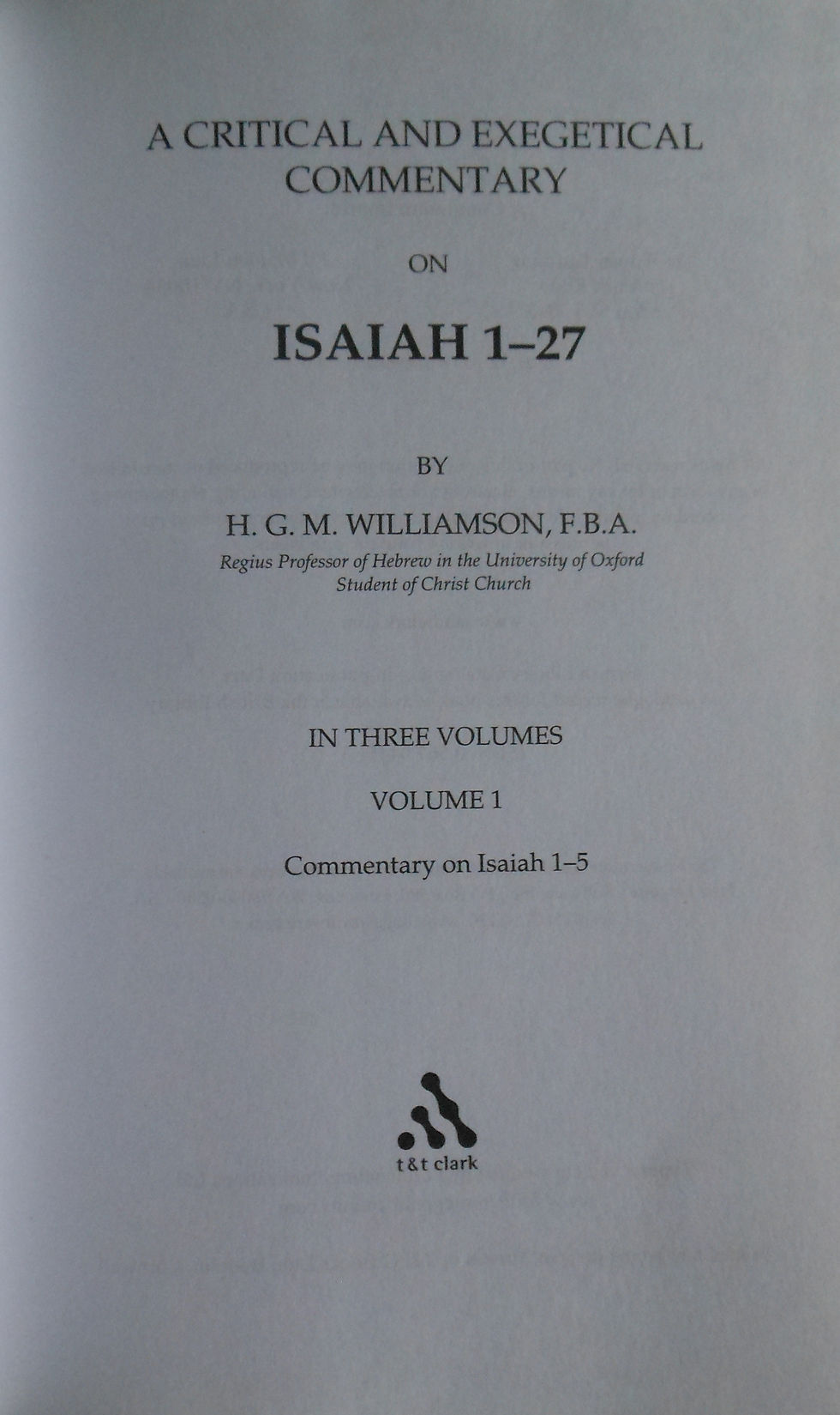 A Critical and Exegetical Commentary on Isaiah 1 to 27. Volume 1.